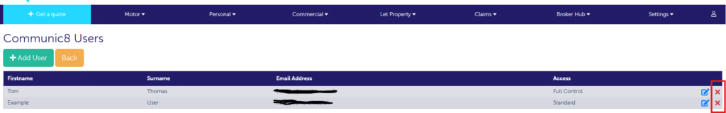 If a user has full admin control on Communic8, they will be able to add or remove users.